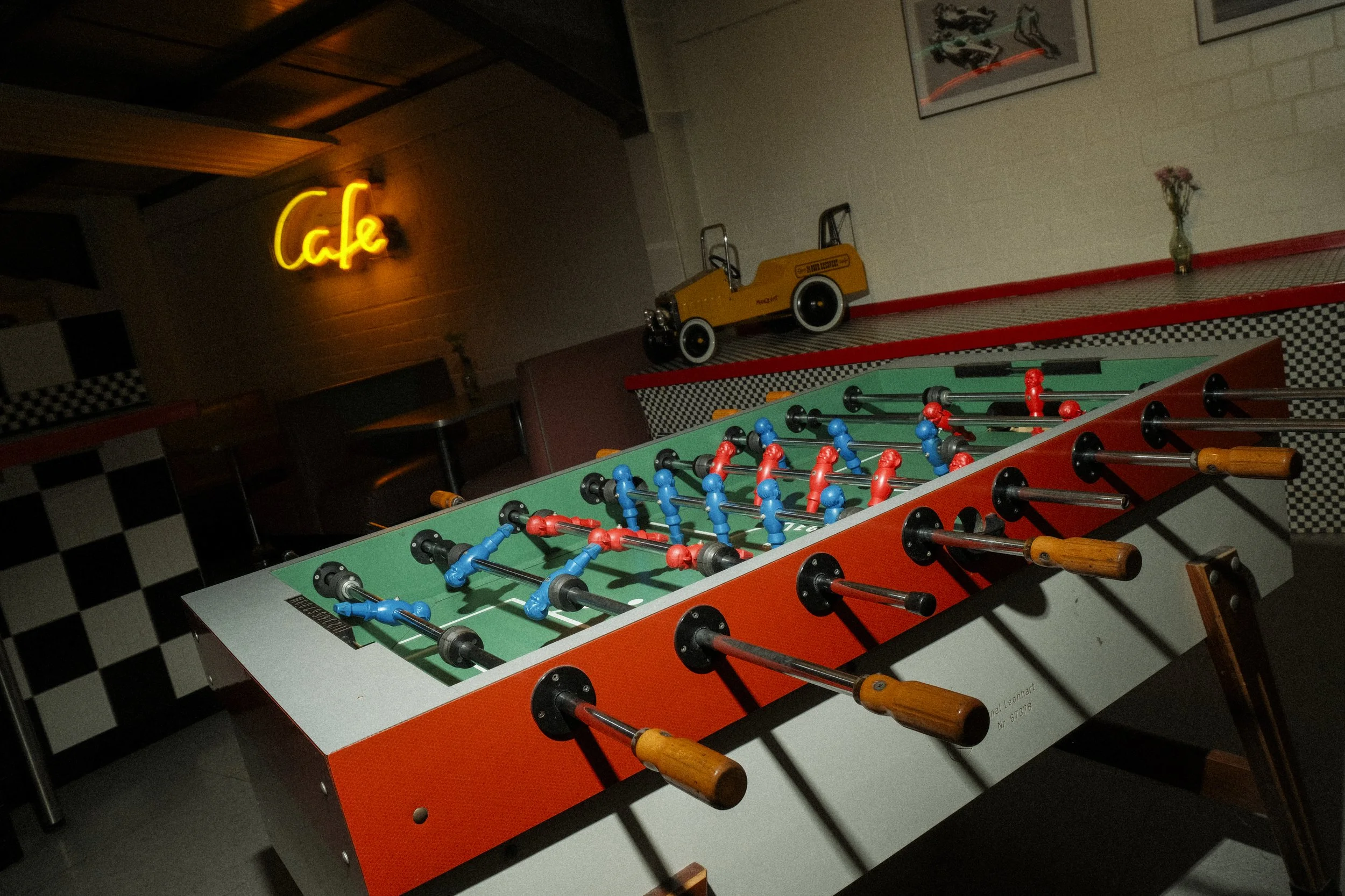 Eine große Theke, gemütliche Sitzgruppen und Highlights wie die Slotcar-Bahn zubuchbarer Moderation und Siegerehrung machen Gapps Event zur perfekten Location für jede Gelegenheit. Kicker und Airhockey sorgen für Action, während Beamer und Leinwand den Rahmen für formellere Anlässe bieten.